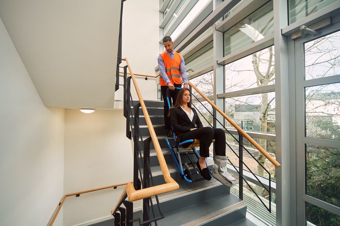 Unique friction belt system - Self-braking track controls smoothness and speed of descent.
