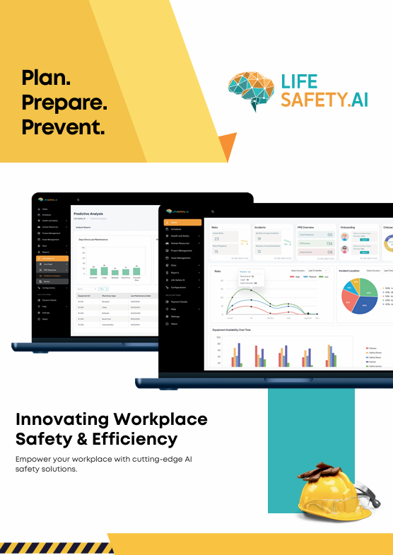 LifeSafety.ai uses AI to help businesses manage workplace safety smarter. Our platform delivers real-time monitoring, predictive analytics, PPE detection, and automated incident reporting — giving you the tools to identify hazards early, maintain compliance, and act before incidents happen. Built for construction, manufacturing, and industrial sectors. Plan. Prepare. Prevent.