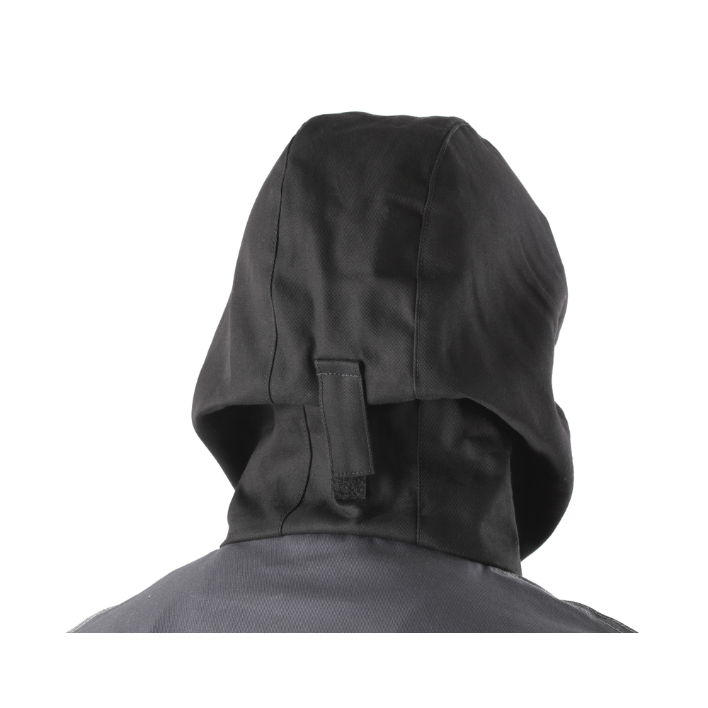 - Adjustable hood for better protection of the head and the neck in case of higher risk, to be worn with a visor or a helmet.