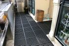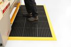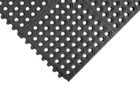 Tiles link together to provide an anti-fatigue surface for particularly wet or oily areas.Soft, yet resilient rubber floor tiles.Open holes allow efficient drainage of spilt liquids.Effective anti-fatigue properties for prolonged standing.Slip tested to DIN 51130.Optional ramped edging in yellow or black.