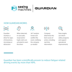 Guardian is a proactive driver safety system that protects heavy-vehicle and commercial fleets with industry-leading drowsiness and distraction detection, backed by a 24/7 human-based monitoring service.