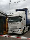 When a driver stops at a pre-determined point, the trailer height is measured from an above gantry or cantilever post where the measurement device is mounted.
