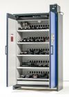 In the images you will see the two most popular cabinets that we produce for the safe storage and charging of Lithium batteries. within both cabinets you have the power to store and charge batteries. Additional features include 90 minute fire resistance inside out and from the outside in, 3 stage alarm system, fire suppression and the ability through a relay module for the cabinet to alert a group of people there could be an issue within the cabinet.