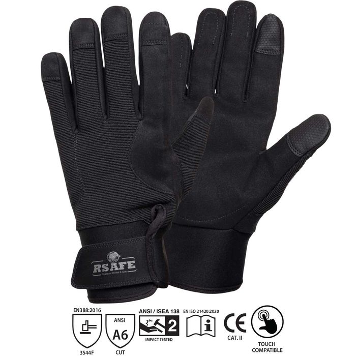 Synthetic leather palm with silicon dots for extreme grip and Cut Level 6 protection. Offers