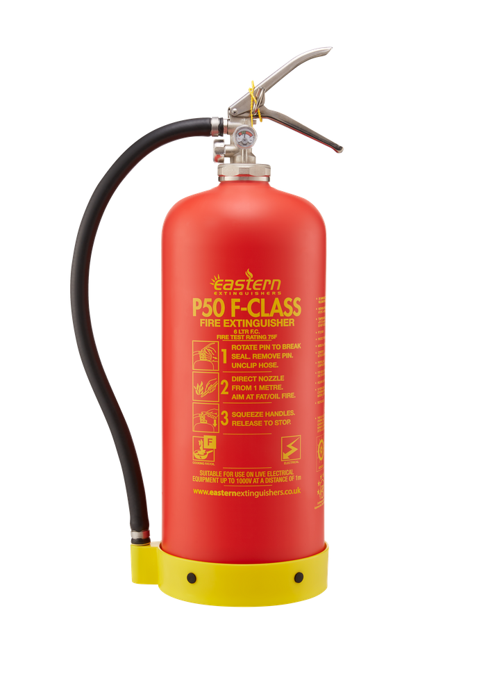 Our F-Class P50 fire extinguisher has a wet chemical formulation making it suitable for use on class F fires involving cooking fat fires, making it ideal for commercial and industrial kitchen applications. The extinguisher medium forms a seal on the surface, preventing re-ignition.