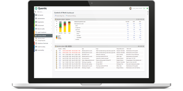 Quentic Control of Work helps you create operational processes that run as smoothly and safely as possible. List all upcoming work orders and risks associated with each. Then define a reasonable approach that includes all the necessary safeguards. Approve specific jobs efficiently and in a revision-proof manner. If current processes need to be improved, make the specific requested changes concrete and break down the implementation into individual phases.
