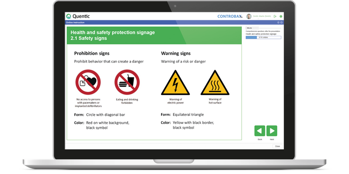 With Quentic, you have your instruction management perfectly under control and coordinate all instructions with ease. Quentic Online Instructions adds an e-learning component to Quentic Health & Safety: Create multi-media learning units that can be conveniently accessed via a PC — anytime, anywhere.