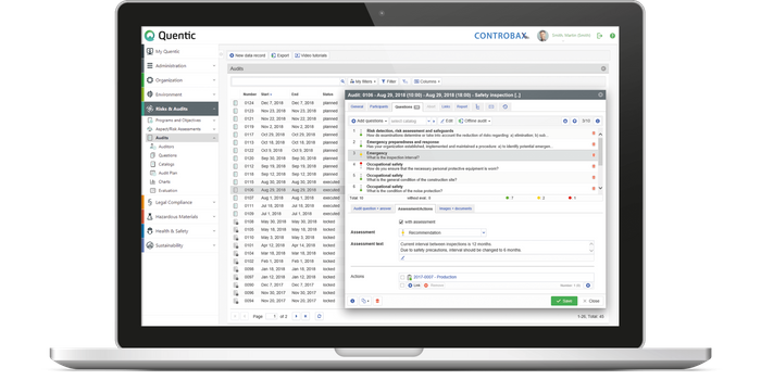 During the continuous inspection and improvement of company processes, Quentic Risks & Audits provides flexibility, reliability and efficiency. It supports you in all the phases of an audit, from planning and execution to the identification and solving of nonconformities. This integrated system can help you and your colleagues save time and energy. Importable questionnaires can be used for a wide range of audit types - e.g. for "Operational pandemic planning" based on COVID-19.