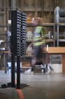 The worker wears the SmartBelt device on a belt to track and measure high-risk ergonomic movement.