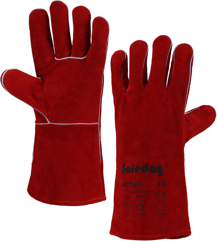 Red cow split leather welding glove, full cotton liner